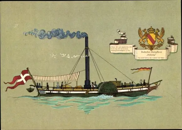 Ak Badisches Dampfboot Helvetia, Wappen, Raddampfer