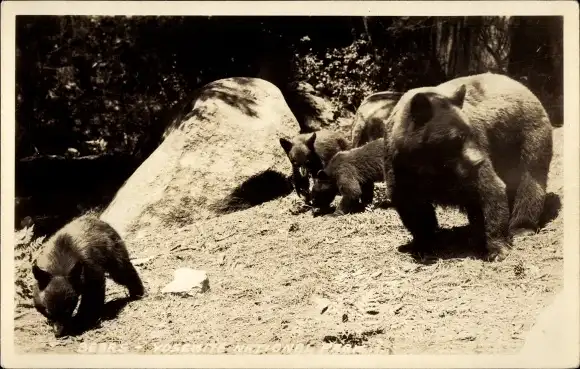 Ak Bärenmutter mit ihren drei Jungtieren im Nationalpark