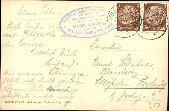 Zustand, siehe Scan, gelaufen, 1938 - ca 14 cm X 9 cm