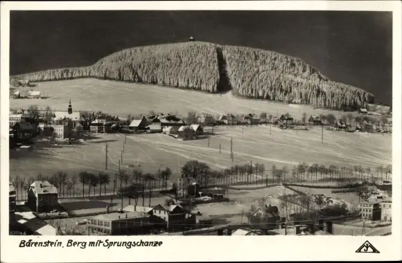 Ak Bärenstein im Erzgebirge, Berg mit Sprungschanze, Winterpanorama