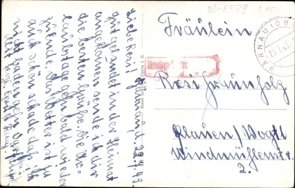 Zustand, siehe Scan, gelaufen, 1943 - ca 14 cm X 9 cm