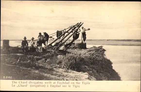 Ak Bagdad Irak, Bewässerungsbrunnen, Tigris