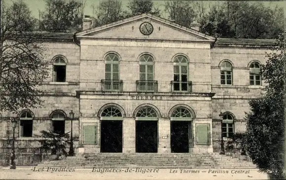 Ak Bagnères de Bigorre Hautes Pyrénées, Les Thermes, Pavillon Central