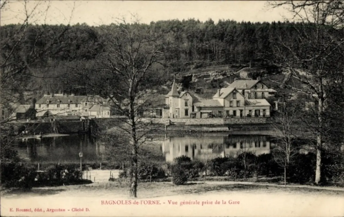 Ak Bagnoles de l'Orne Orne, Vue générale prise de la Gare
