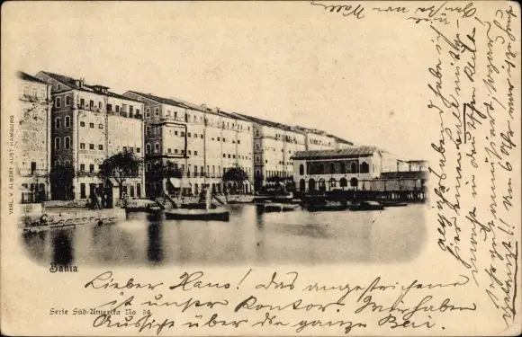 Ansichtskarte, Postkarte, Hafen, Schiffe, Boote, Dampfer, Boot
