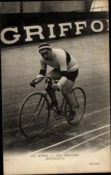 Ak Bahnradfahrer Bourotte, Radrennbahn