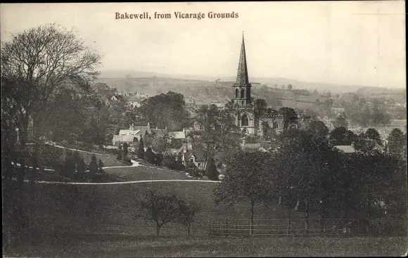 Ak Bakewell East Midlands, View from Vicarage Grounds, Church
