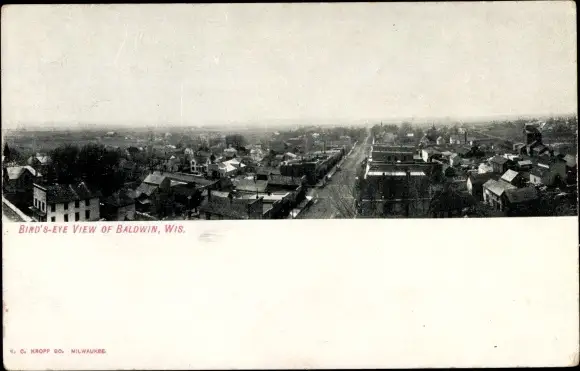 Ak Baldwin Wisconsin USA, Vogelschau