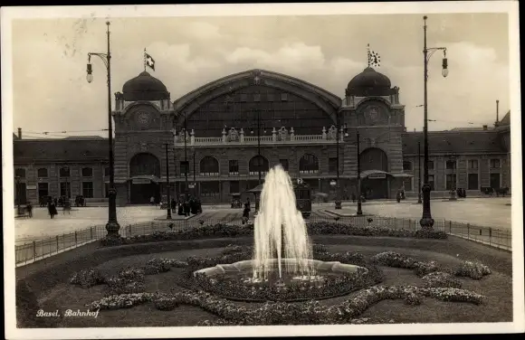 Ak Bâle Basel Stadt Schweiz, Bahnhof, Brunnen