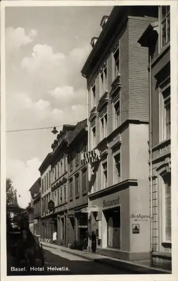 Ak Bâle Basel Stadt Schweiz, Hotel Helvetia, Straßenansicht, Restaurant