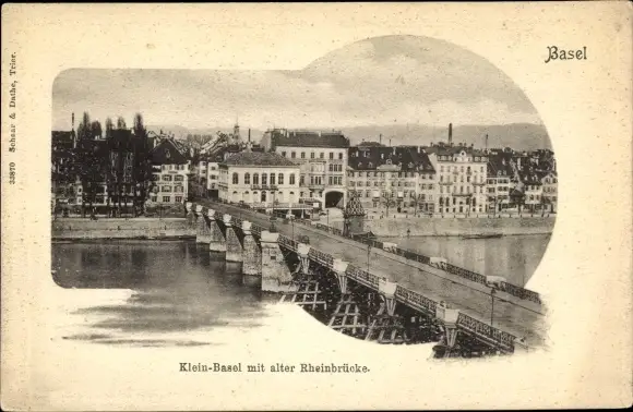 Ak Bâle Basel Stadt Schweiz, Klein-Basel mit alter Rheinbrücke