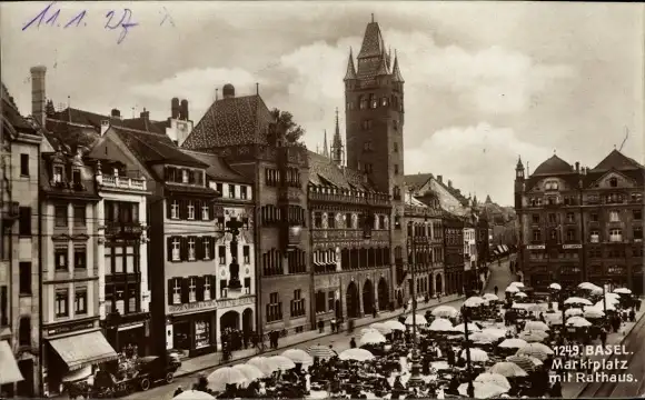 Ak Bâle Basel Stadt Schweiz, Marktplatz mit Rathaus