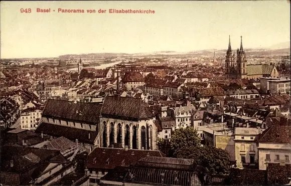 Ak Bâle Basel Stadt Schweiz, Panorama von der Elisabethenkirche