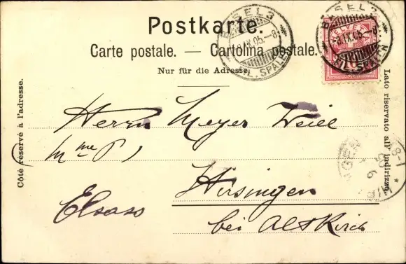 Zustand, siehe Scan, gelaufen, 1905 - ca 14 cm X 9 cm