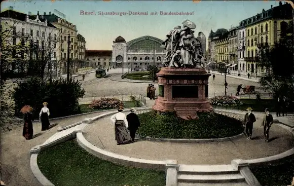 Ak Bâle Basel Stadt Schweiz, Strassburger Denkmal, Bundesbahnhof