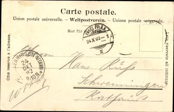gelaufen 1902, Briefmarke entfernt, sonst guter Zustand