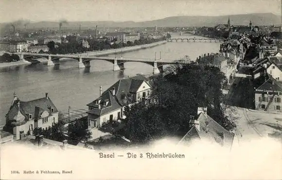 Ak Bâle Basel Stadt Schweiz, Totalansicht mit den drei Rheinbrücken