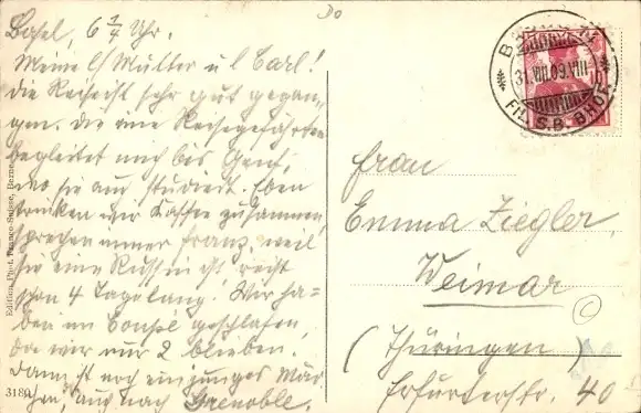 Zustand, siehe Scan, gelaufen, 1909 - ca 14 cm X 9 cm