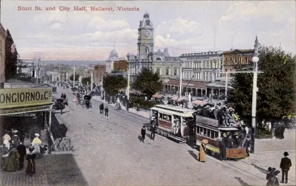 Ak Ballarat Victoria Australien, Sturt Street, Rathaus