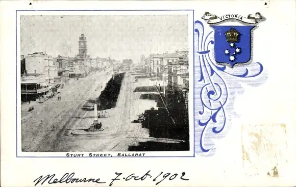 Ak Ballarat Victoria Australien, Sturt Street, Wappen