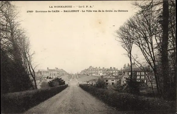 Ak Balleroy Calvados, La Ville vue de la Grille du Chateau