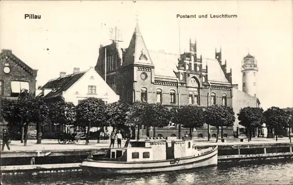 Ak Baltijsk Pillau Ostpreußen, Post, Leuchtturm