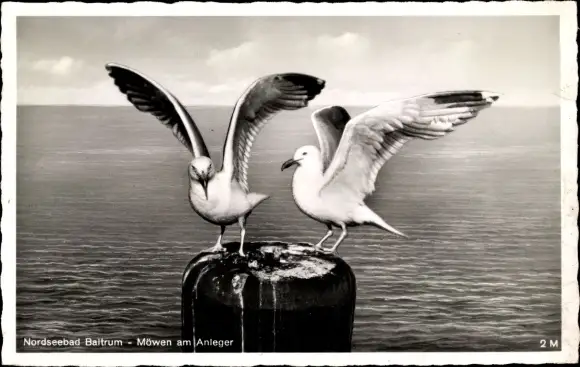Ak Baltrum, Möwen am Anleger
