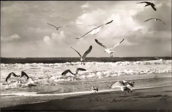 Ak Baltrum, Möwen am Strand