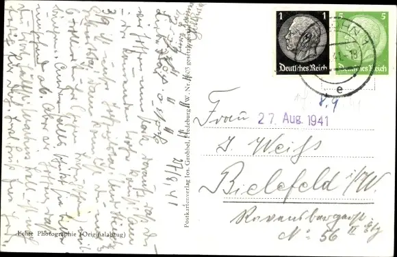 Zustand, siehe Scan, gelaufen, 1941 - ca 14 cm X 9 cm