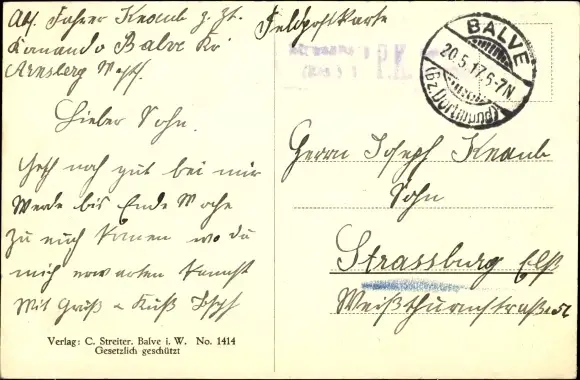 Zustand, siehe Scan, gelaufen, 1917 - ca 14 cm X 9 cm