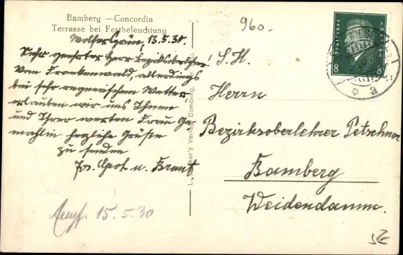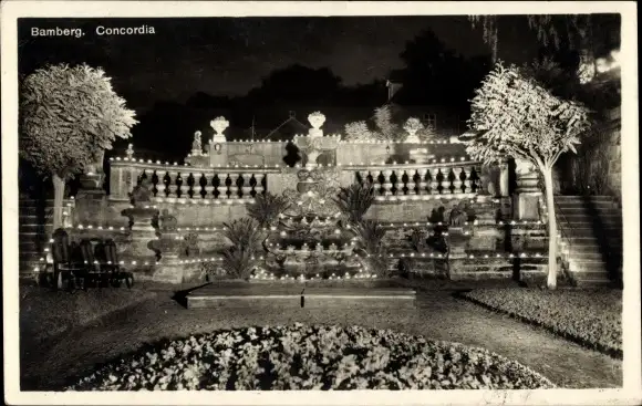 Ak Bamberg an der Regnitz Oberfranken, Concordia, Terrasse bei Festbeleuchtung
