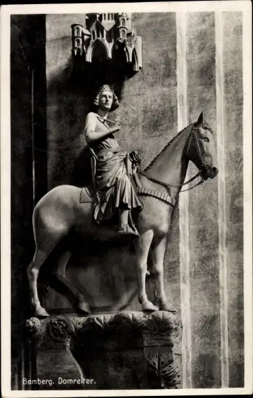 Ak Bamberg an der Regnitz Oberfranken, Domreiter, Skulptur, Pferd