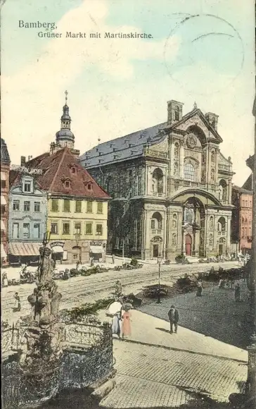 Ak Bamberg in Oberfranken, Grüner Markt, Martinskirche, Denkmal