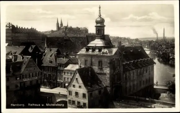 Ak Bamberg in Oberfranken, Rathaus und Michaelsberg