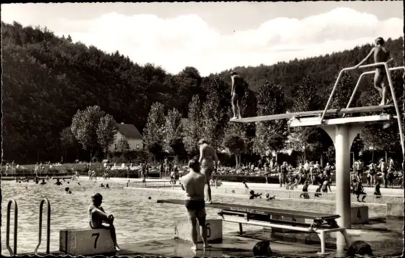Ak Bammental, Schwimmbad, Badegäste, Sprungturm