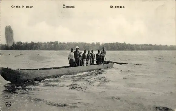 Ak Banana DR Kongo Zaire, Mit dem Kanu