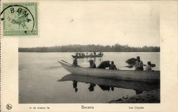 Ak Banana Kongo Zaire, Les Criques, Männer in Booten