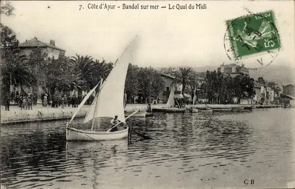 Ak Bandol sur Mer Var, Quai du Midi, Segelboot