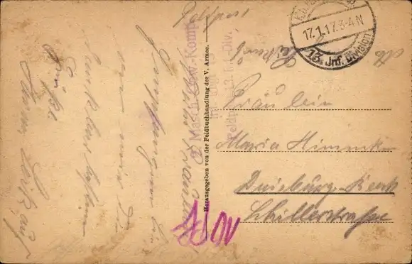 Zustand, siehe Scan, gelaufen, 1917 - ca 14 cm X 9 cm
