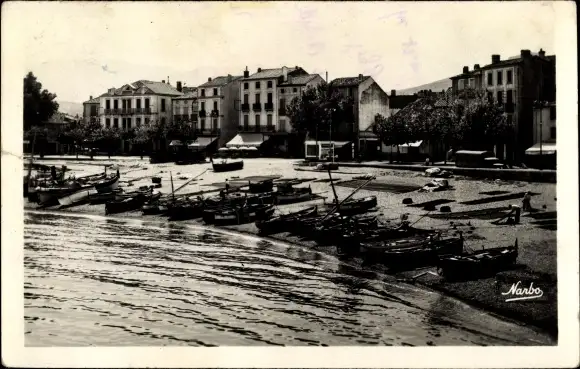 Ak Banyuls sur Mer Pyrénées-Orientales, Plage, Bateaux