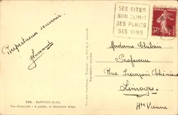 Ak Banyuls sur Mer Pyrénées-Orientales, Vue d'ensemble, Laboratoire Arago