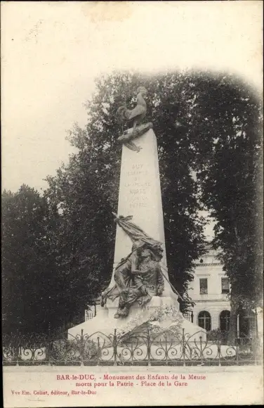 Ak Bar le Duc Meuse, Monument des enfants de la Meuse morts pour la Patrie, Place de la Gare