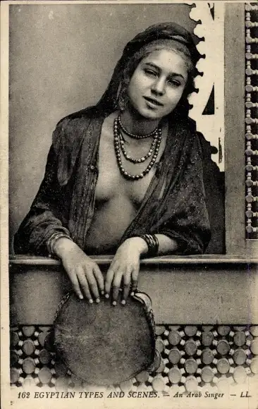 Ak Barbusige Ägypterin, Tamburin, Perlen