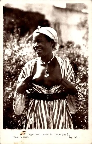 Ak Barbusige Afrikanerin in Volkstracht, Halskette