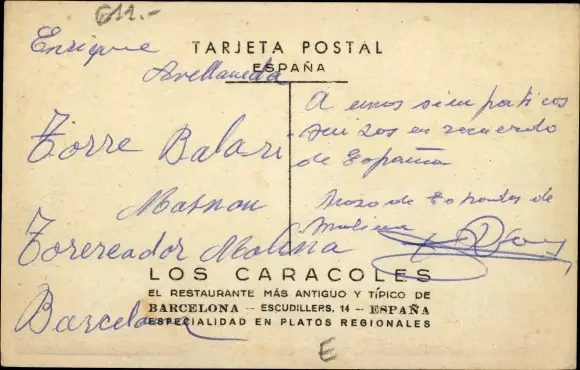 Ak Barcelona Katalonien, Los Caracoles, Restaurante, Escudillers 14