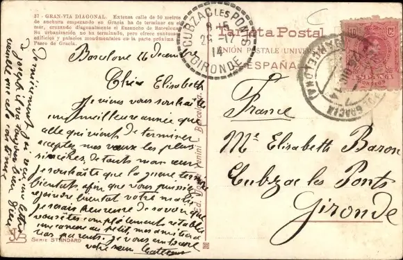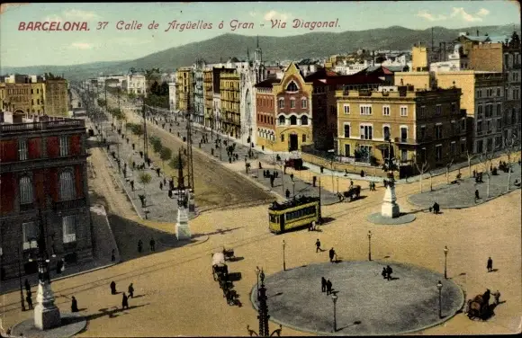 Ak Barcelona Katalonien Spanien, Calle de Argüelles o Gran, Vue Diagonal, Straßenbahn