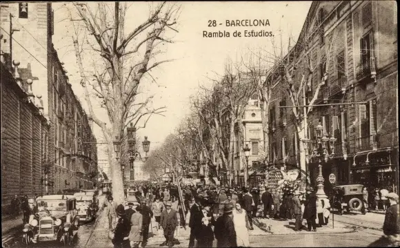 Ak Barcelona Katalonien Spanien, Rambla de Esfudios