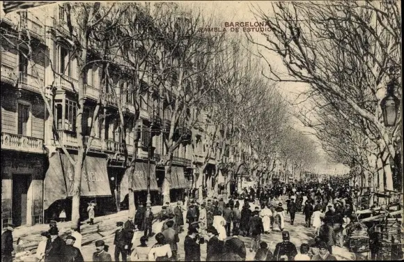 Ak Barcelona Katalonien Spanien, Rambla de Estudio