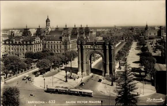 Ak Barcelona Katalonien Spanien, Salon Victor Pradera, tranvia