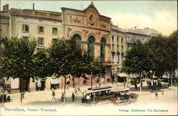 Ak Barcelona Katalonien, Teatro Principal, Straßenbahn